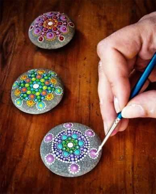 การเลือกหินกรวดแม่น้ำเพราะว่าหินชนิดนี้มีพื้นผิวเรียบลื่น ทาสีและวาดรูปได้ง่ายเหมาะสำหรับการเริ่มต้น