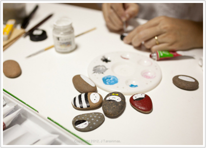 ก่อนจะเข้าสู่โหมดธุรกิจที่จับมาทำเป็นเรื่องเป็นราวงานนี้ควรฝึกฝีมือกันก่อนเอาแบบเบื้องต้นว่าถ้าอยากเพ้นต์หินสักก้อนต้องเตรียมตัวยังไงและใช้อุปกรณ์อะไรบ้าง