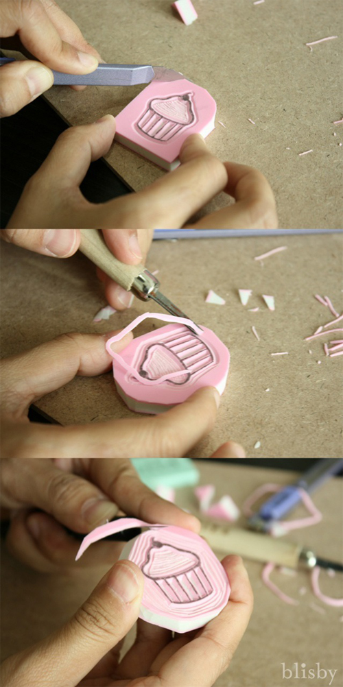 ขั้นตอนการแกะสลักยางลบ