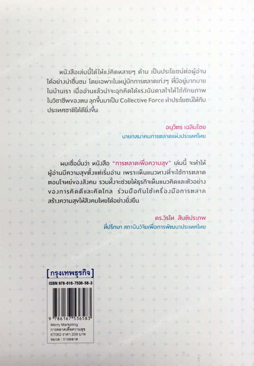 การตลาดเพื่อความสุข (Merry Marketing) การตลาด "ฉีกแนว" นำสังคมสู่ความสุขอย่างยั่งยืน ของ สำนักพิมพ์กรุงเทพธุรกิจ ที่มีแนวคิดการตลาด “แตกต่าง” จากHow To การตลาดทั่วไป