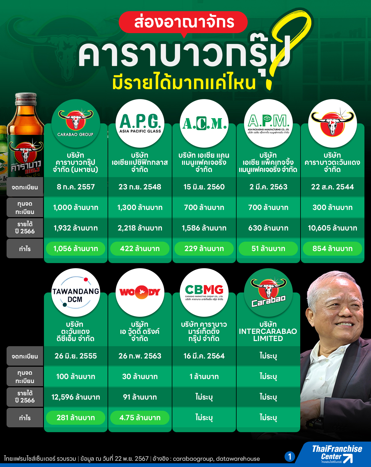 ส่องอาณาจักร "คาราบาวกรุ๊ป" แต่ละธุรกิจ มีรายได้มากแค่ไหน?