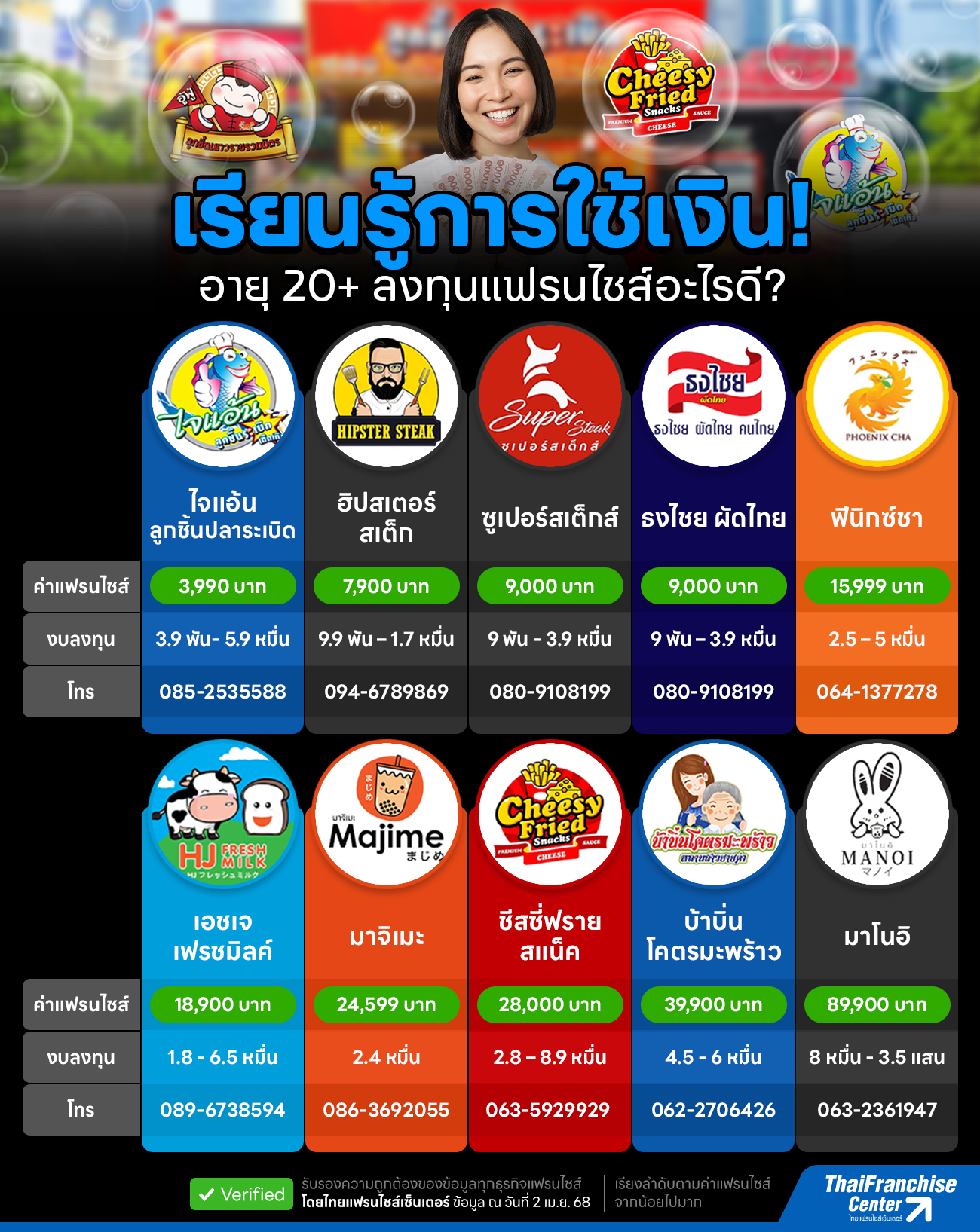 เรียนรู้การใช้เงิน! 20+ ลงทุนแฟรนไชส์อะไรดี?