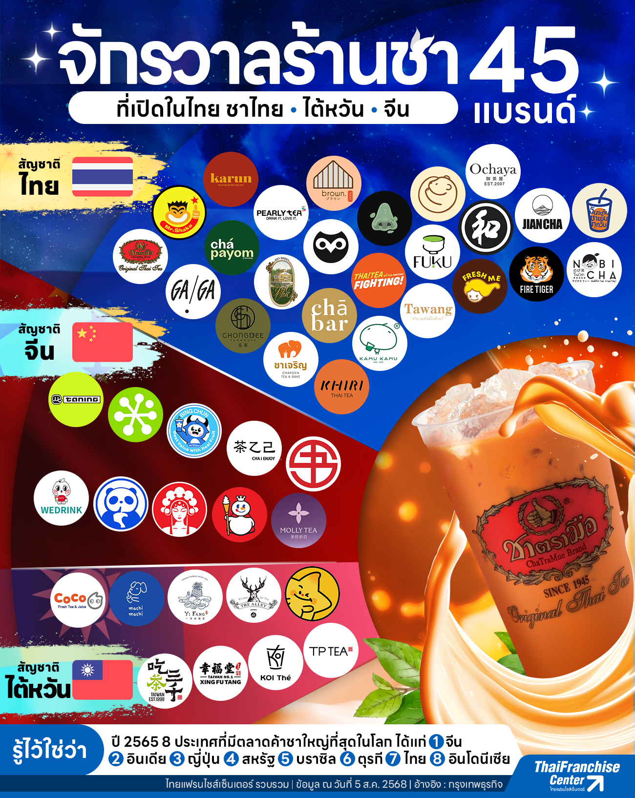 เช่น HEYTEA, Brown Café, Fire Tiger, Chagee, CHA i ENJOY, Naixue, KOI Thé ฯลฯ