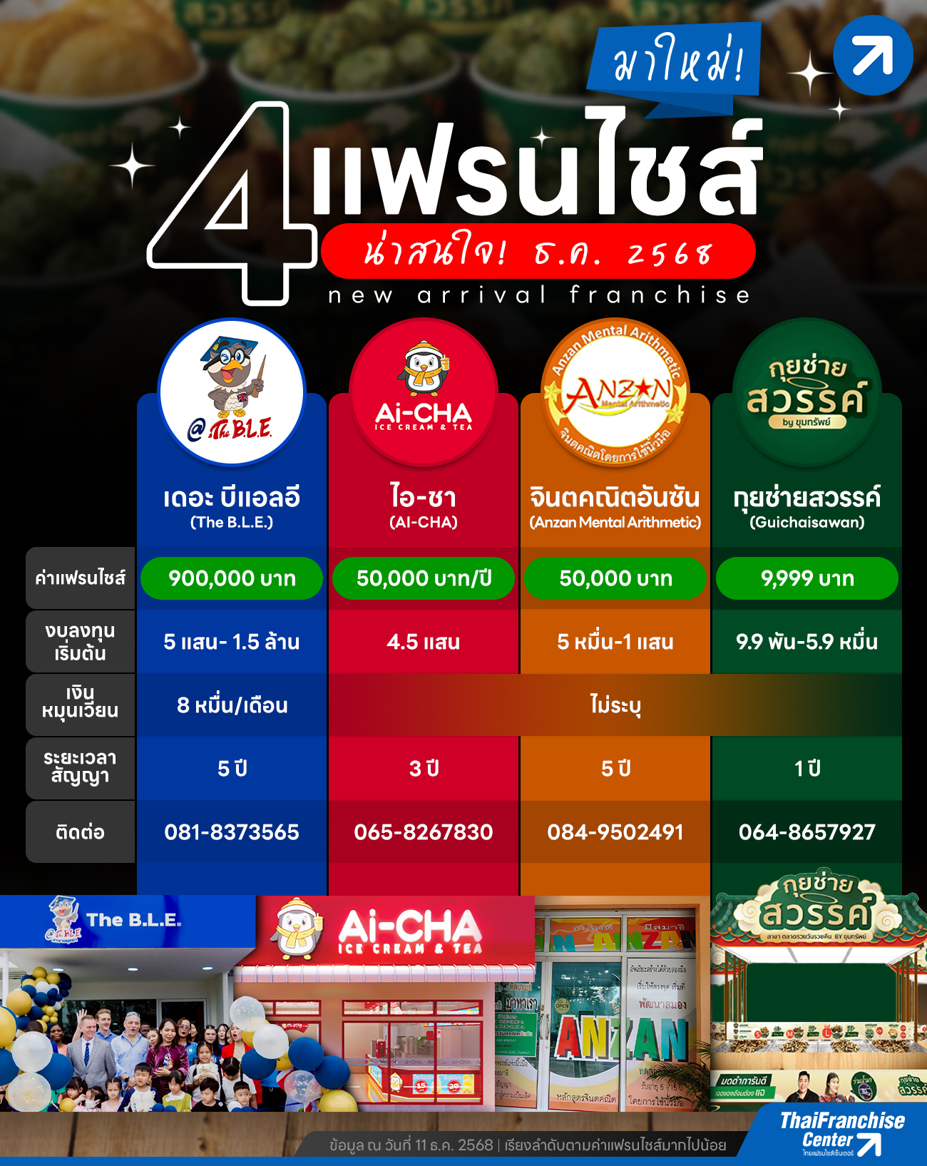 4 แฟรนไชส์มาใหม่! น่าลงทุนประจำเดือนธันวาคม 2568