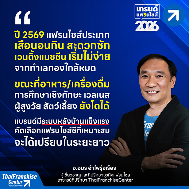 ท่ามกลางภาวะเศรษฐกิจที่ยังเผชิญกับความผันผวน ธุรกิจแฟรนไชส์ไทยในช่วงปี 2568–2569 กำลังอยู่ในช่วงของการปรับตัวครั้งสำคัญ ผู้เชี่ยวชาญด้านแฟรนไชส์เห็นสอดคล้องกันว่า ตลาดไม่ได้เติบโตหวือหวา แต่กำลังเข้าสู่ช่วงปรับธุรกิจให้มีคุณภาพ แบรนด์ที่มีระบบบริหารจัดการแข็งแรง เข้าใจพฤติกรรมผู้บริโภค และไม่เร่งขยายสาขาเกินศักยภาพ ยังคงสามารถยืนระยะและสร้างโอกาสในการเติบโตได้ ขณะธุรกิจแฟรนไชส์ที่ไม่มีการสร้างระบบ มีแนวโน้มเผชิญแรงกดดันและถูกถอดออกจากตลาด