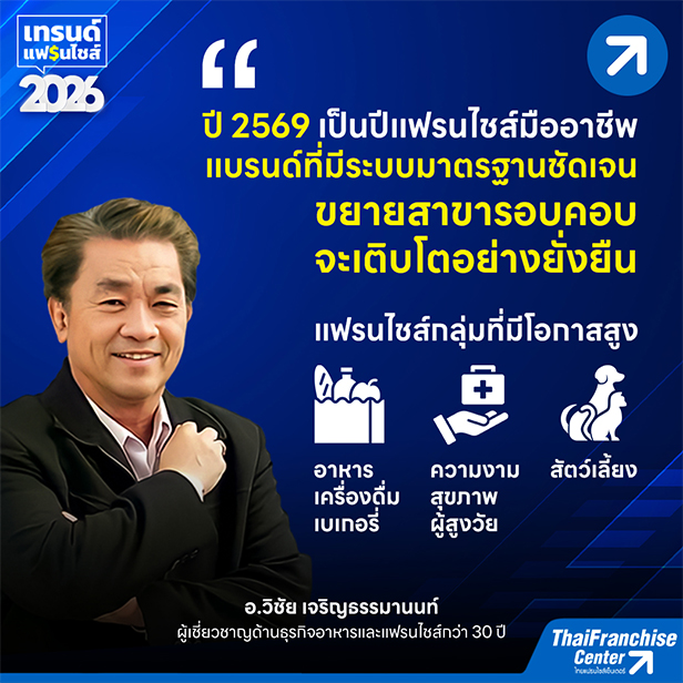 เมื่อมองไปข้างหน้าในปี 2569 ภาพรวมการแข่งขันของตลาดธุรกิจแฟรนไชส์ในประเทศไทยจะเข้มข้นขึ้น จากทั้งแบรนด์ในประเทศและต่างประเทศ ส่งผลให้แฟรนไชส์ไทยจำเป็นต้องยกระดับความเป็นมืออาชีพ สร้างระบบมาตรฐานที่ชัดเจน และพัฒนาโมเดลธุรกิจให้สอดรับกับความต้องการของผู้บริโภค เพื่อสร้างการเติบโตอย่างมั่นคงในระยะยาว