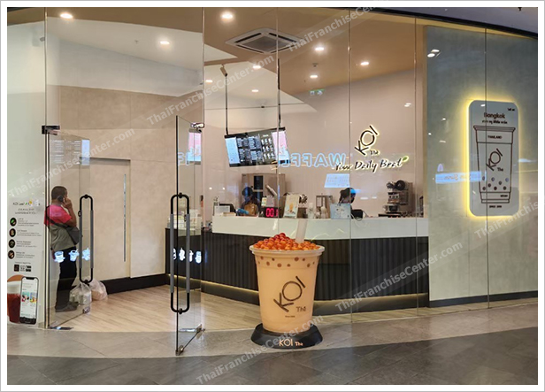 โดยเข้าสู่เมืองไทยเมื่อปี 2016 สาขาแรกในเมืองไทยอยู่ที่เซ็นทรัล บางนา ในช่วงแรก KOI Thé ไม่ได้ทุ่มงบโฆษณาทางโทรทัศน์หรือป้ายขนาดใหญ่ แต่ใช้ influencer และการรีวิวแบบปากต่อปาก รวมถึงการสร้างเอกลักษณ์ ไข่มุกสีทอง ทำให้เกิดปรากฏการณ์การเข้าแถวรอคิวยาว ปัจจุบันมีสาขาในประเทศไทยมากกว่า 70 แห่งเน้นตามห้างสรรพสินค้าและหัวเมืองใหญ่ โดยไม่เปิดขายแฟรนไชส์เพราะต้องการควบคุมมาตรฐานให้เท่าเทียมในทุกสาขา
