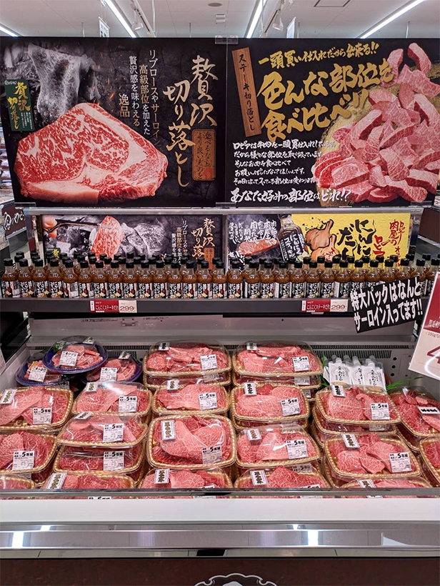 ในหมวดอาหารสด เนื้อสัตว์ถือเป็นไฮไลต์สำคัญของร้าน โดยมีการจำหน่ายเนื้อวากิวญี่ปุ่นระดับพรีเมียม และเนื้อโคคุณภาพสูงหลากหลายเกรด การจัดเรียงสินค้าถูกออกแบบให้มีตัวเลือกหลายขนาดและหลายช่วงราคา (SKU หลากหลาย) เพื่อรองรับทั้งผู้บริโภคทั่วไปและกลุ่มลูกค้าที่ต้องการสินค้าพรีเมียมโดยเฉพาะ ความเชี่ยวชาญด้านการคัดสรรและแปรรูปเนื้อสัตว์ ซึ่งเป็นรากฐานดั้งเดิมของบริษัท ยังคงสะท้อนผ่านมาตรฐานคุณภาพและการนำเสนอสินค้าในทุกสาขา