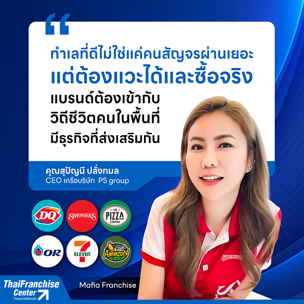 เส้นทางธุรกิจของ คุณสุปัญนี ปลั่งกมล หรือ “คุณยุ้ย” CEO เครือบริษัท PS Group คือ หนึ่งในตัวอย่างของผู้ประกอบการที่เติบโตจากการลงทุนแฟรนไชส์อย่างเป็นระบบ เริ่มต้นจากการบริหารร้าน 7-Eleven เพียงหนึ่งสาขา ก่อนจะค่อยๆ สะสมประสบการณ์ ขยายพอร์ตธุรกิจ และสร้างระบบการบริหารที่แข็งแกร่ง จนปัจจุบันดูแลแฟรนไชส์รวมกว่า 6 แบรนด์ 18 สาขา