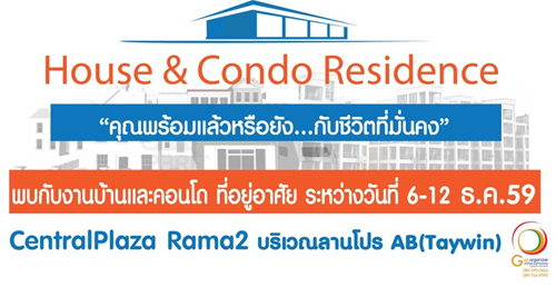 คุณพร้อมแล้วหรือยังกับชีวิตที่มั่นคง พบกับงานบ้านและคอนโด ที่ยู่อาศัย ระหว่างวันที่ 6-12 ธันวาคม 2559 ที่ CentralPlaza Rama 2 บริเวณลานโปร AB (Taywin)