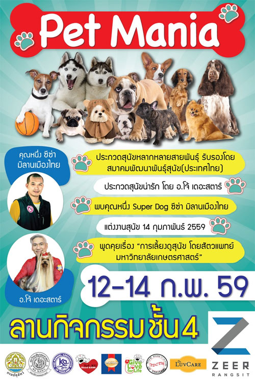 ศูนย์การค้าเซียร์รังสิตร่วมกับสมาคมพัฒนาพันธุ์สุนัข(ประเทศไทย) ขอเชิญชวนผู้รักสุนัขเข้าร่วมงาน Pet Mania #มีการบริจาคเลือดสุนัขและแมว และพบกับ Hilight ของงาน #การแต่งงานน้องหมา และกิจกรรมมากมายภายในงาน พร้อมพบกับ อาจารย์โจ้ เดอะสตาร์ และ คุณหนึ่ง ซีซ่า มิลานเมืองไทย ในวันที่ 12-14 กุมภาพันธ์นี้ ณ บริเวณลานกิจกรรมชั้น4 #ศูนย์การค้าเซียร์รังสิต ตั้งแต่เวลา 10.30น.เป็นต้นไป