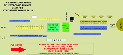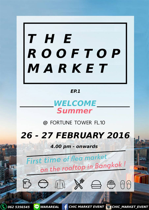 เปิดจองบูธ The rooftop market Ep.1 Welcome summer ตึกฟอร์จูนทาวน์ ชั้น 10 วันที่ 26-27 กุมภาพันธ์ 2559 เวลา 4 โมงเย็นเป็นต้นไป