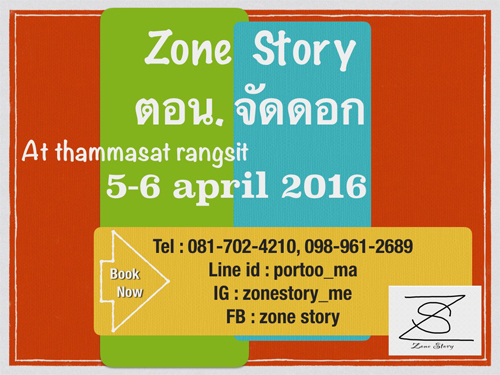 | งาน Zone Story ตอน "จัดดอก" 5-6 เมษายน 59 (เชิญชวนผู้ร่วมงานใส่เสื้อลายดอก)