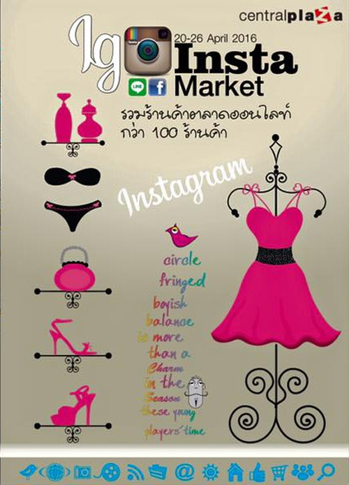 ขอเชิญเพื่อน ๆ มาช๊อปกันได้ที่งาน Insta Market งานที่รวมร้าค้าตลาดออนไลน์กว่า100 ร้านค้า มาช๊อปกันได้ สินค้ามากมาย อาทิ เช่น น้ำหอม เสื้อผ้าเเฟชั่น กระเป๋า รองเท้า และอื่นๆ อีกมากมาย แล้วพบกันที่ ห้างสรรพสินค้า central rama2 โซนลานชั้น G บริเวณลิฟท์แก้ว และโซน Allz ถึง Fq&L