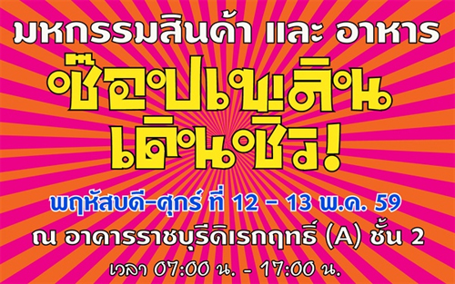ขอเชิญทุกท่านร่วมช๊อปกับงานมหกรรมสินค้าและอาหาร "ช๊อปเพลินเดินชิว"