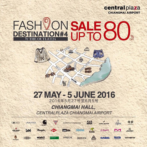 งานเซลล์ครั้งยิ่งใหญ่แห่งปี Fashion Destination #4 ลดสูงสุดถึง80% ในวันที่ 27 พ.ค. - 5 มิ.ย. 59 นี้ ณ เชียงใหม่ฮอลล์ ศูนย์การค้าเซ็นทรัลพลาซา เชียงใหม่ แอร์พอร์ต
