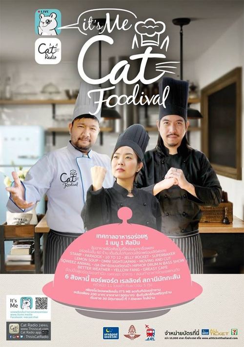 It’s Me Cat Foodival เทศกาลอาหารอร่อยหู 1 เมนู 1 ศิลปิน ชิมอาหารฝีมือศิลปินดีไซน์เมนูจากชื่อเพลง อร่อยไม่อั้น 60 ร้าน เต็มอิ่มไปกับคอนเสิร์ตพร้อมเสิร์ฟของ STAMP • PARADOX • 10 TO 12 • JELLY ROCKET • SUPERBAKER • LEMON SOUP • OMNI SIGHT(JAPAN) • MOVING AND CUT • SQWEEZ ANIMAL • ตุล อพาร์ตเมนต์คุณป้า HIPHOP DRUM N BASS SHOW • BETTER WEATHER • YELLOW FANG • GREASY CAFE ช้อปปิ้งฟู้ดช้อปของทำมือ concept อาหาร • สอนทำอาหารโดยเชฟคนดัง