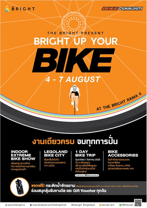 ***แจกฟรี !! กระติกน้ำจักรยาน...เพียงปั่นจักรยานมาร่วมงาน วันที่ 4 ส.ค. 59 เวลา 16.00 - 18.00 น. (มาก่อนเลือกสีก่อน สินค้ามีจำนวนจำกัด) พร้อมร่วมสนุกลุ้นรับรางวัล และ Gift Voucher ทุกวัน