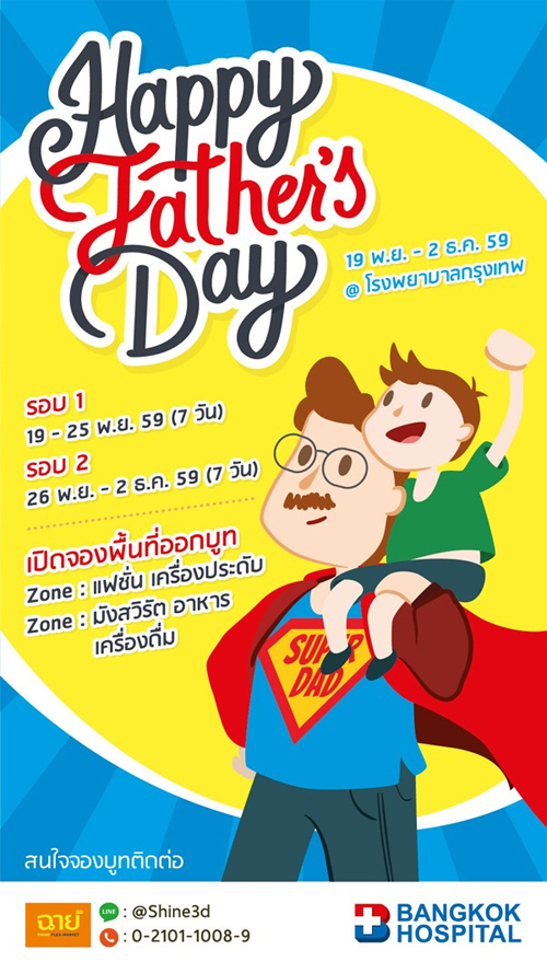 เปิดจองบูท งาน “วันพ่อ” @ โรงพยาบาลกรุงเทพ (ซอยศูนย์วิจัย) บริเวณ อาคาร D หน้าห้องอาหารญาติ