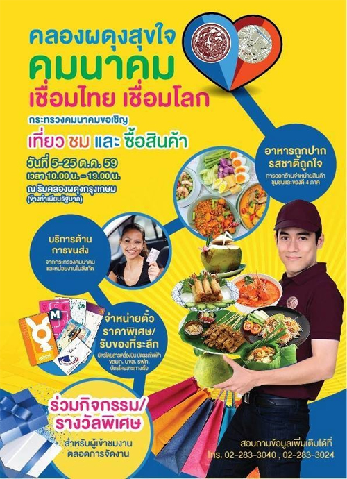 กระทรวงคมนาคม เชิญร่วมงานตลาดน้ำ "คลองผดุงสุขใจ คมนาคม เชื่อมไทย เชื่อมโลก" ระหว่างวันที่ 5-25 ตุลาคม 2559 พบกับ อาหารถูกปากรสชาติถูกใจ และ กิจกรรมต่าง ๆ อีกมากมาย