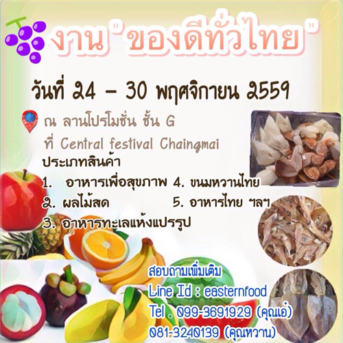 ข่าวดีสำหรับพ่อค้าแม่ค้าจ้าา เปิดจองพื้นที่ทำเลทองอย่าพลาดกับงาน "ของดีทั่วไทย" ที่จะจัดขึ้นในวันที่ 24 - 30 พฤศจิกายน 2559 ณ ลานโปรโมชั่น ชั้น G ที่ Central festival Chaingmai