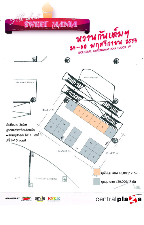 เปิดจองบูธ ในงาน All About Sweet Maniaมาช้อปเพลินเดินชิวๆกับขนมหวานแสนอร่อย พบกับการรวบรวมขนมหวานนานาชนิดมาให้เหล่าคนรักของหวานได้ลิ้มรสความหอมละมุนกันถึงที่ ณ ลานโปรโมชั่นชั้น 1 เซ็นทรัลพลาซา แจ้งวัฒนะ (หน้า MNG )