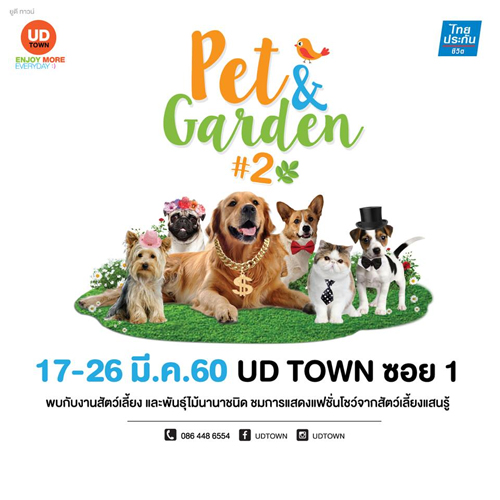 ยูดี ทาวน์ขอเชิญทุกท่านมาสัมผัสกับศูนย์รวมต้นไม้นานาพันธุ์ และสัตว์เลี้ยงนานาชนิด ในงาน Pet & Garden #2 ในวันที่ 17 - 26 มีนาคม 2560 พบกับสัตว์แปลกหลายรูปแบบ, นกหลากหลายสายพันธ์, การแสดงสุนัขแสนรู้, การแสดงสุนัขทหาร, การแสดงสุนัขตำรวจ บูธจำหน่ายต้นไม้ราคาถูกและสัตว์เลี้ยงนานาชนิดมากมาย ตั้งแต่ 12.00 น.เป็นต้นไป ณ บริเวณลานกิจกรรม ซอย 1 ศูนย์การค้ายูดี ทาวน์