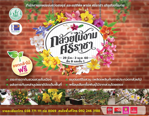 ขอเชิญเที่ยวชมงาน กล้วยไม้งาม...ศรีราชา 2560 กับการเนรมิตพื้นที่เป็นสวนบุปผชาติสุดตระการตา เลือกซื้อพรรณไม้งามหลากหลายชนิด พร้อมฟังดนตรีในสวนสวย