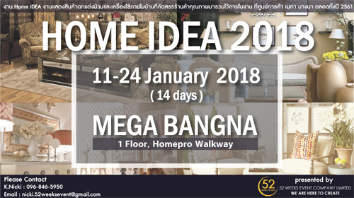 งาน HOME IDEA จัดบริเวณ Homepro Walkway ชั้น 1 (ใกล้กับร้าน Auntie Anne's) กับของใช้ภายในบ้าน มากมาย อาทิ เครื่องใช้ไฟฟ้าขนาดเล็ก เครื่องนอน เครื่องครัว หุ่นยนต์ทำความสะอาด ของตกแต่งบ้านสไตล์ Loft ฯลฯ พร้อมเปิดจองพื้นที่แล้ววันนี้