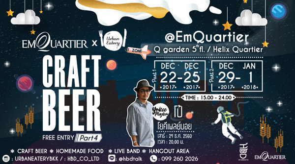 เทศกาลงานเบียร์ข้ามปี Urban Eatery ความสนุก x 4 พบกับเครื่องดื่มทำเองจากหลากหลายแบรนด์ ทั้งแบรนด์ดัง ที่พร้อมจะมาเปิดโลกการดื่มของคุณ ให้ลืมการดื่มแบบเก่าๆไปเลย และหนีจากความวุ่นวายมาฟินกับอาหารสไตล์โฮมเมดจากร้านดัง เปลี่ยนบรรยากาศนั่งรับลมหนาวที่ Q Garden ชั้น 5 Helix Emquatier