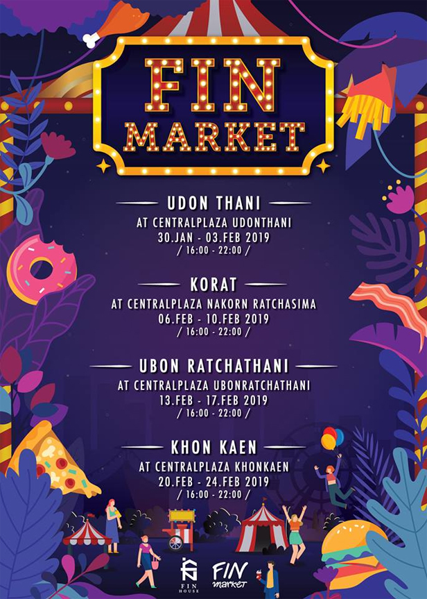 กับงาน ฟินมาร์เก็ต จัดเต็มกันอย่างจุใจกับการมาเยือนที่ภาคอีสาน ได้แก่ ... อุบลราชธานี 13-17 กุมภาพันธ์ 2562