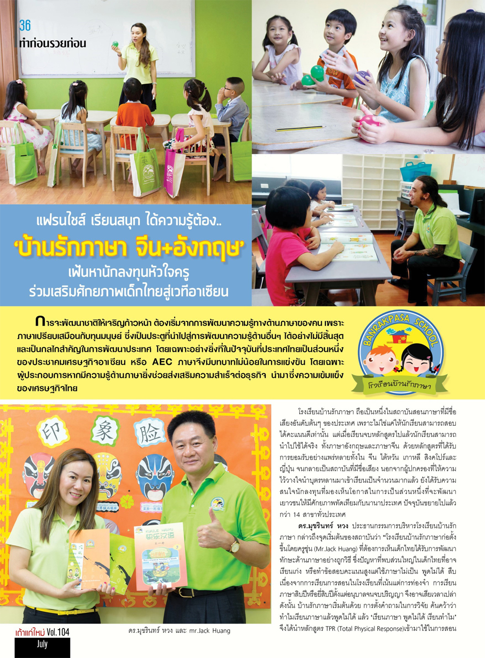 แฟรนไชส์บ้านรักภาษาจีน+อังกฤษ รางวัลแฟรนไชส์คุณภาพมาตรฐานและ Best Practice 2558-2559