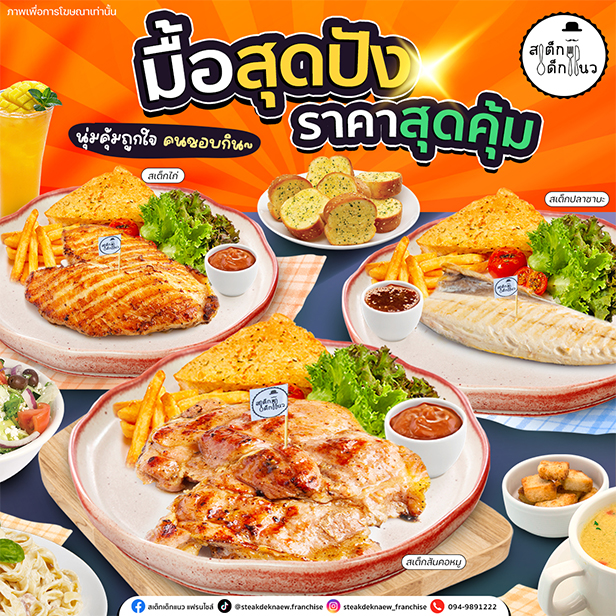 สนใจลงทุนแฟรนไชส์สเต็กเด็กแนว โทร. 094-9891222 , 080-8987222 , 084-6333602