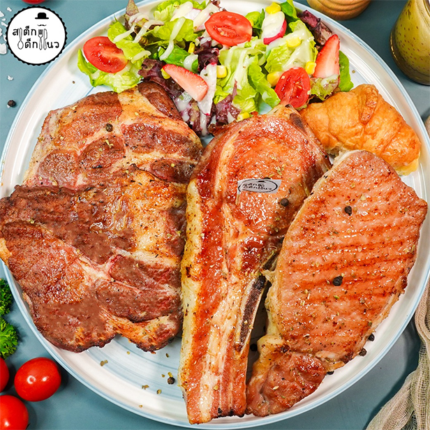 เมนูยอดฮิตจากวัตถุดิบนี้คือสเต็กหมูสันนอกหมักพริกไทยดำ รสชาติอร่อยมาก หรือพอร์คชอพ คือเนื้อส่วนที่คล้ายกับทีโบนในเนื้อวัวคือเนื้อสัน ติดกระดูก เมนูยอดฮิตจากวัตถุดิบนี้คือ สเต็กหมูพอร์คชอพลักษณะเนื้อติดกระดูกแทรกด้วยมันหมู เมื่อนำไปย่างจึงมีความหอมนุ่มเป็นเอกลักษณ์เฉเพาะตัว สำหรับผู้สนใจลงทุนทางแฟรนไชส์มี 4 แพ็กเกจให้เลือก