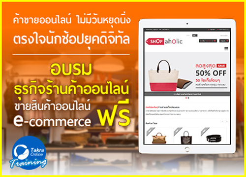 ดูเพิ่มเติมที่: http://www.takraonlinetraining.com/อบรมการขายสินค้าออนไลน์_ธุรกิจร้านค้าออนไลน์_e_commerce_การตลาดออนไลน์-details.aspx (วันธรรมดา)