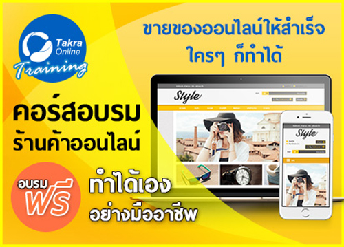 คอร์สอบรมร้านค้าออนไลน์ ทำได้เองอย่างมืออาชีพ (Introduction to Professional E-Commerce)กับทาง TakraOnline เราจะแนะนำให้ท่านรู้จักกับระบบร้านค้าออนไลน์ที่มีคุณสมบัติครบถ้วนตามหลักสากล สาธิตวิธีการจัดการ และเปิดโอกาสให้ท่านทดลองจัดการร้านค้าการจัดการสินค้าได้ด้วยตัวของท่านเอง