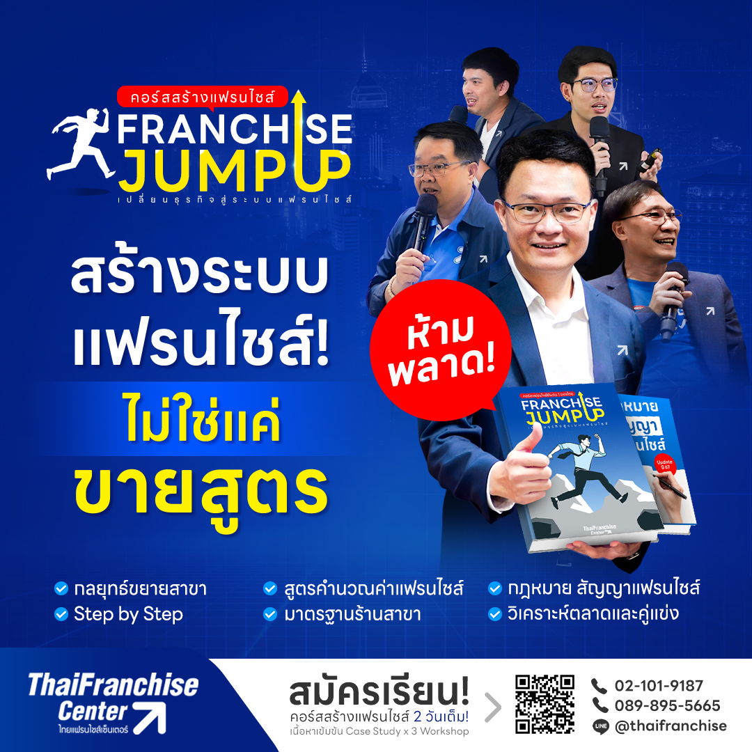 "แฟรนไชส์" คือกลยุทธ์ต่อยอดธุรกิจ โดยอาศัยการขยายสาขา กระจายความสำเร็จ” แฟรนไชส์ไทยบางแบรนด์ ที่เริ่มจากการสร้างขึ้นมาเอง มักขาดความรู้ความเข้าใจอย่างแท้จริง ทำให้วางแผนไม่ถูกต้อง ซึ่งทำให้มีโอกาสเจ๊งสูง ภายใน 3 ปีแรกของการดำเนินธุรกิจ ดังนั้น สิ่งสำคัญคือการปูพื้นฐาน สร้างความรู้ และนำไปใช้ได้จริงในทันที!