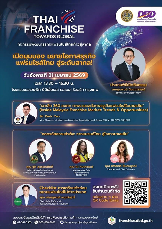 - เผยเคล็ดลับสร้างแฟรนไชส์ให้สำเร็จในเวทีโลก พร้อมเปิดเทรนด์ธุรกิจที่แฟรนไชส์ต้องรู้