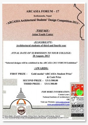 โดยผลงานที่ได้รับการคัดเลือกจากสมาคมฯ จะได้เข้าร่วมประกวดในงาน ARCASIA Students' Architectural Design Competition 2013 ณ กรุงกาฐมาณฑุ ประเทศเนปาล