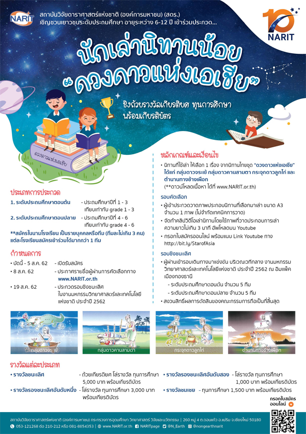 - สร้างความรู้ความเข้าใจเรื่องดาราศาสตร์แก่นักเรียนประถมศึกษาผ่านการประกวดเล่านิทาน
