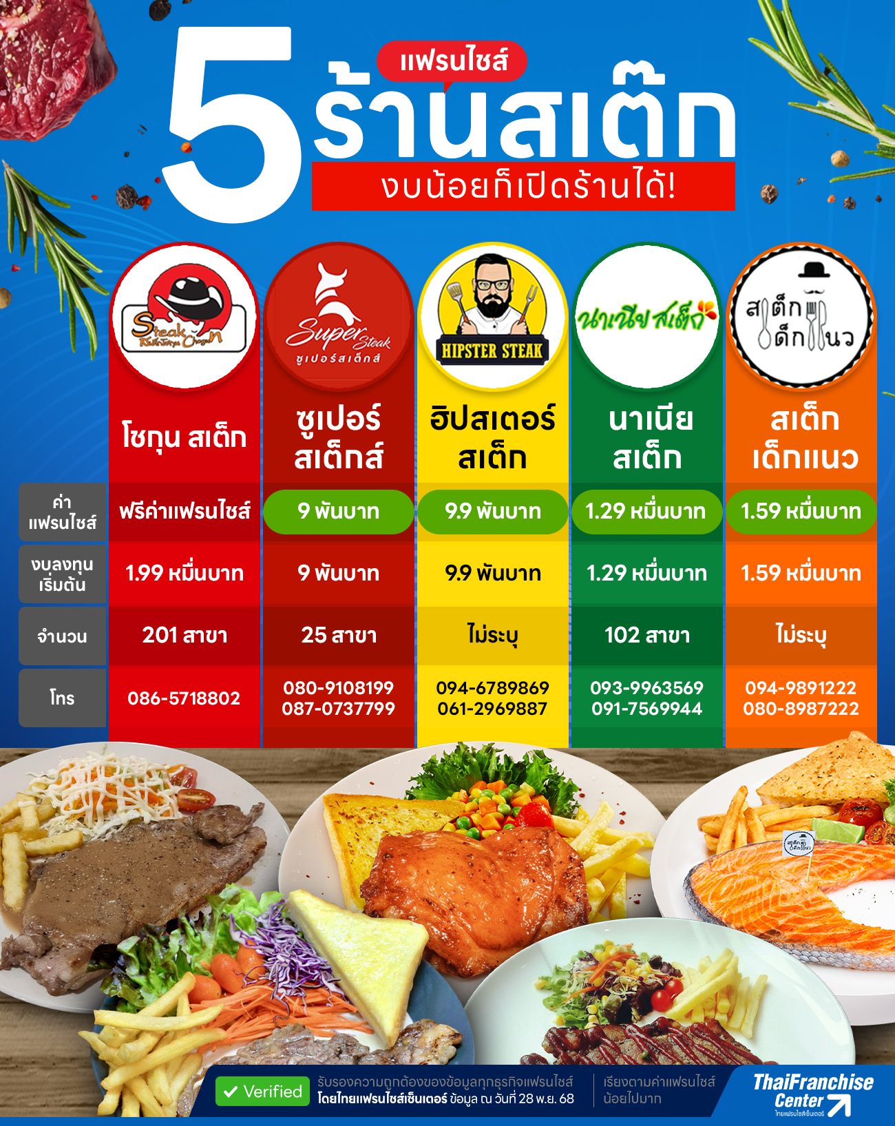 โชกุน สเต็ก อยู่ในอันดับที่น่าสนใจ ดังนี้
