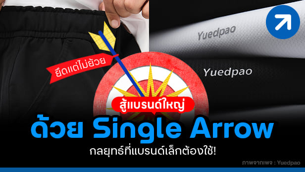 ยกตัวอย่าง Yuedpao แบรนด์เสื้อยืดสัญชาติไทยที่เติบโตมาจากบูธเล็ก ๆ ที่ตลาดนัดจตุจักร เน้น Single Arrow คือ “ซักแล้วไม่ย้วย ไม่ต้องรีด” เพื่อมุ่งเป้าไปที่ ปัญหาหลักของผู้ใช้เสือยืดส่วนใหญ่ที่มักเจอปัญหา คอเสื้อย้วย ทำให้ลูกค้ารับรู้จุดเด่นของแบรนด์ได้อย่างชัดเจน และทำให้ Yuedpao จากแบรนด์เล็กๆค่อยก้าวสู่การเป็นแบรนด์ใหญ่ที่มีรายได้กว่าพันล้านบาท