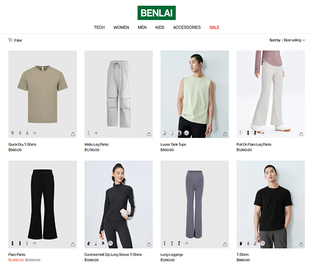 ในด้านสินค้า BENLAI นำเสนอเสื้อผ้าลำลองที่ครอบคลุมการใช้งานในชีวิตประจำวันได้อย่างครบถ้วน ไม่ว่าจะเป็น