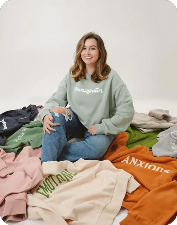 นี่คือแบรนด์ที่เริ่มต้นในปี 2020 ขณะที่ยังเป็นนักศึกษาในตอนนั้น แต่ตัวของ Sophie มีปัญหาที่ต้องเผชิญกับสภาวะความวิตกกังวลรวมถึงโรคแพนิคอย่างหนัก และก็ค้นพบว่าการได้ระบายความรู้สึกผ่านงานศิลปะและการเขียนข้อความให้กำลังใจตัวเองเป็นสิ่งที่ช่วยเยียวยาจิตใจได้ดีที่สุด