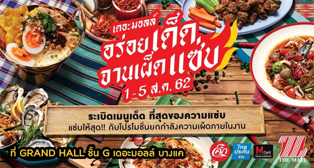 เดอะมอลล์ ช้อปปิ้งเซ็นเตอร์ ชวนนักชิมอาหารรสเผ็ดได้ลิ้มลองความอร่อย ในงาน “เดอะมอลล์ อร่อยเด็ด จานเผ็ดแซ่บ” ภายใต้คอนเซ็ปต์ “อร่อยยกกำลังแซ่บ” เทศกาลอาหารจานเผ็ดหลากหลายเมนูกว่า 2,000 เมนู จากร้านอาหารชื่อดังนับ 200 ร้านค้า