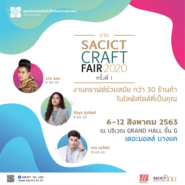 ในงาน “SACICT CRAFT FAIR 2020 ครั้งที่ 1” ในวันที่ 6 ส.ค. 63 - 12 ส.ค.63 บริเวณ Grand Hall ชั้น G เดอะมอลล์ บางแค