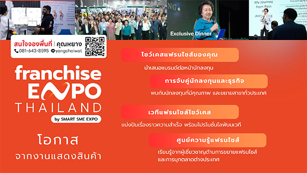 โอกาสทองเจ้าของแบรนด์ กับงาน Franchise Expo Thailand 2026 งานแฟรนไชส์และโซลูชันธุรกิจระดับประเทศ By Smart SME Expo ที่รวมผู้ซื้อ ตัวแทน นักลงทุน และพาร์ตเนอร์ธุรกิจไว้ในที่เดียว