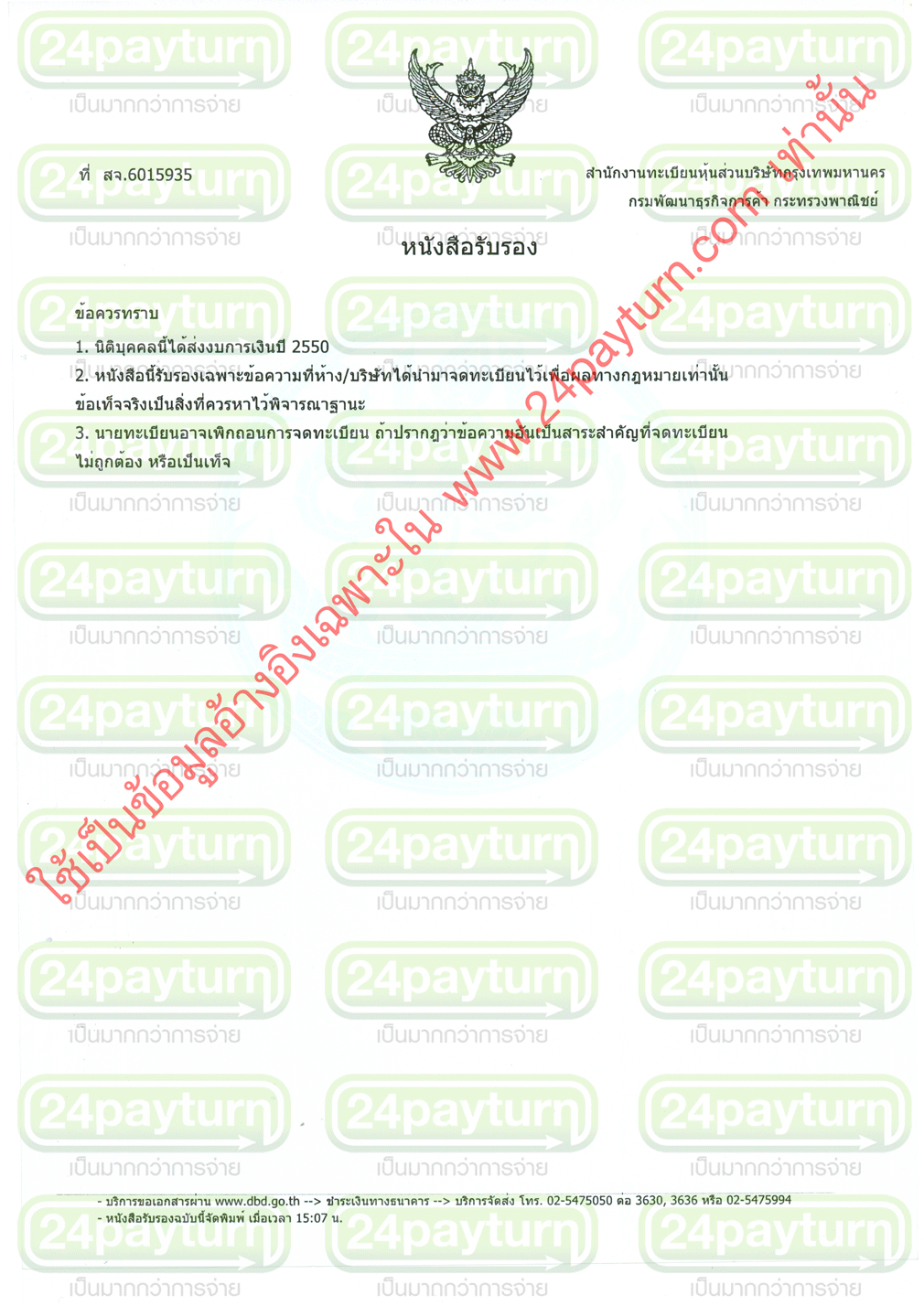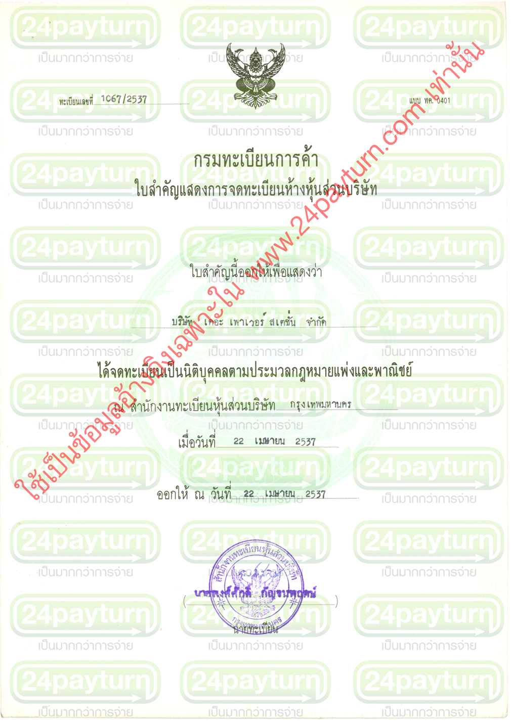 24payturn อยู่ภายใต้การบริหารงานของ บริษัท เดอะ เพาเวอร์สเตชั่น จำกัด ประกอบธุรกิจด้านเทคโนโลยีสารสนเทศจัดทำโปรแกรมคอมพิวเตอร์ธุรกิจด้านIT,E-commerceเปิดดำเนินการตั้งแต่ปีพ.ศ.2537ด้วยทุนจดทะเบียน5,000,000บ.และจดทะเบียนให้บริการรับเติมเงินมือถือออนไลน์และชำระค่าสินค้าและบริการกับกรมพัฒนาธุรกิจการค้า กระทรวงพาณิชย์ ถูกต้องตามกฎหมาย