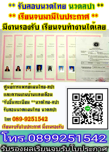 รับสอนนวดไทย เรียนจบมีใบประกาศ ติดต่อ 089-9251542