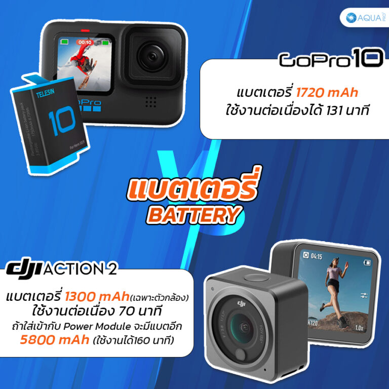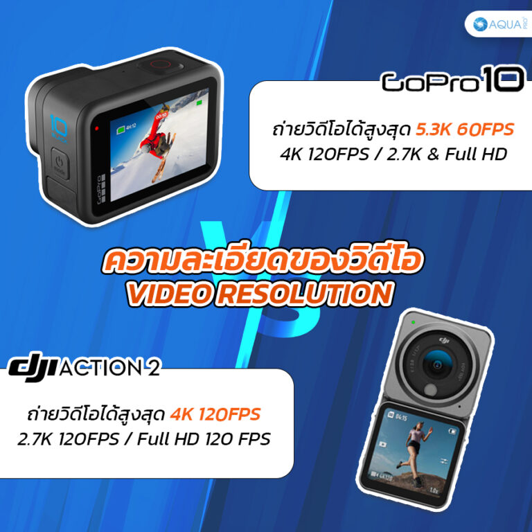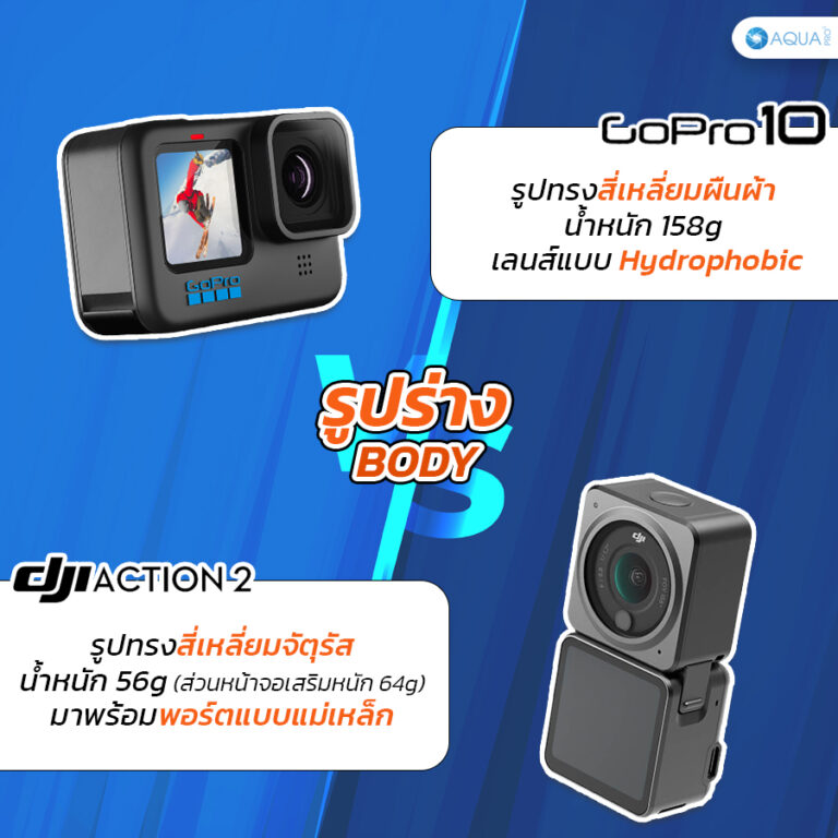 Aquapro เลยจะมาเปรียบเทียบกล้องทั้งสองตัวระหว่าง GoPro 10 vs DJI Action 2 ว่าตัวไหนดีกว่ากันอยากรู้ต้องห้ามพลาดไปอ่านในบทความกันเลย!!!